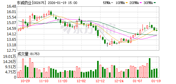 东诚药业1月15日获融资买入1409.96万元,融资余额11.96亿元