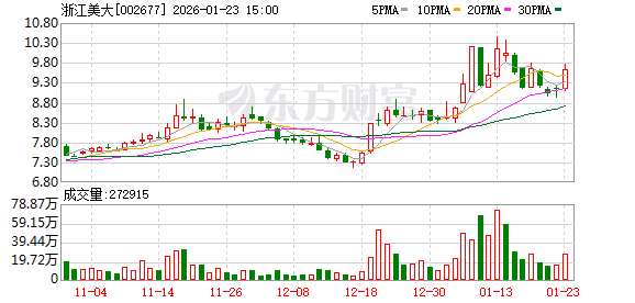 浙江美大股东户数环比下降11.50% 今日大涨5.48%