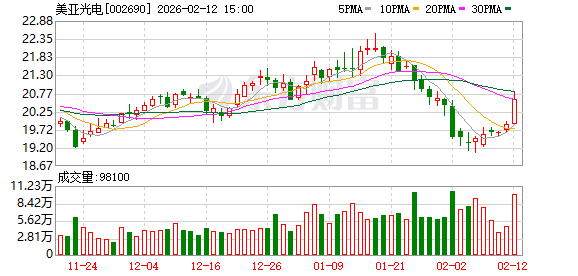 资金面因素:2月11日主力资金净流入662.36万元,近期资金呈活跃态势。截至2月10日,股东户数为 28,256户,较前期增加8.46%,市场关注度可能提升。 股价情况 技术面修复:股价在2月5日至12日区间涨幅达6.62%,突破短期均线压力,MACD指标显示空头动能减 弱。 以上内容基于公开资料整理,不构成投资建议。 股价异动原因 商业秘密侵权纠纷终审胜诉:2026年1月6日,公司公告最高人民法院终审判决被告合肥登特菲医疗设备 有限公司赔偿美亚光电经济损失1.98亿元及合理维权开支约96万元。尽管赔偿款项能否完全执行存在不 确定性,但该结果强化了公司知识产权保护力度。 业绩经营情况 基本面数据支撑:2025年三季报显示,公司营收同比增长7.35%,归母净利润同比增长15.30%,毛利率 达52.95%,盈利能力持续改善。公司也在互动平台表示2025年第四季度经营正常,无未披露重大事 项。 资金面情况 经济观察网 美亚光电(002690)(002690.SZ)于2026年2月12日股价出现异动,单日上涨3.67%,收盘 报20.61元,成交额放大至2.02亿元,换手率达2.26%。 ...