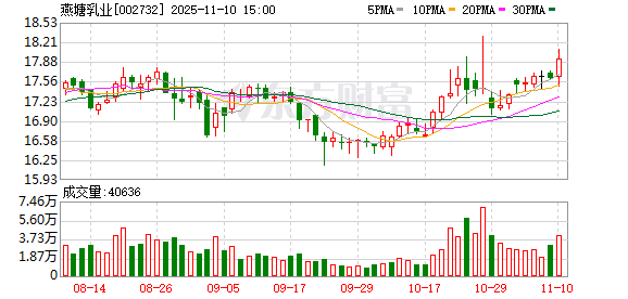 燕塘乳业11月10日现1笔大宗交易 总成交金额482.5万元 溢价率为7.64%
