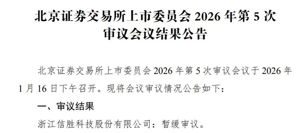 在上市委会议现场,上市委要求保荐机构及申报会计师对存在"具有跨境外汇支付能力的第三方付款"情况的全部销售客户进一步核查,包括但不 限于客户与第三方关于资金收付、业务费用等约定及执行情况、付款方经常变化的原因、相关客户年外汇额度及对信胜科技的分配情况,进一步 确认公司销售收入的真实性。 瑞财经 王敏 1月16日,浙江信胜科技股份有限公司(以下简称"信胜科技")北交所IPO申请被暂缓审议,成为2026年沪深北三大交易所首例暂缓审 议的IPO项目,保荐机构为国信证券。 | 项目 | 2025年6月30日 | 2024年12月31日 | 2023年12月31 | 2022年12月31日 | | --- | --- | --- | --- | --- | | | /2025年1月-6月 | /2024年度 | 日/2023年度 | /2022年度 | | 资产总计(元) | 1,203,380,804.41 | 989.323.803.40 | 823,110,682.35 | 618.492,455.92 | | 股东权益合计(元) | 563.742.591.56 | 469.325.566.10 | 376.63 ...