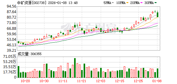 中矿资源跌7.44%,机构龙虎榜净卖出3.04亿元