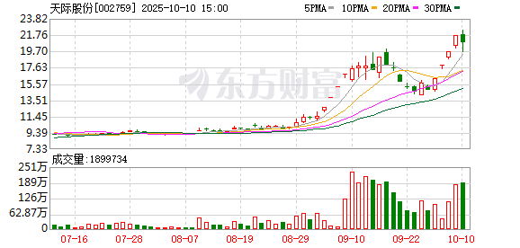 固态电池概念股多数走高,天际股份涨停
