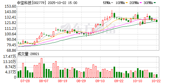 中坚科技10月22日大宗交易平台出现一笔成交,成交量48.00万股,成交金额5874.72万元,大宗交易成 交价为122.39元,相对今日收盘价折价0.88%。该笔交易的买方营业部为华福证券有限责任公司苏州相 城区阳澄湖中路证券营业部,卖方营业部为财通证券股份有限公司永康九铃东路证券营业部。 进一步统计,近3个月内该股累计发生7笔大宗交易,合计成交金额为2.12亿元。 证券时报·数据宝统计显示,中坚科技今日收盘价为123.48元,下跌3.15%,日换手率为1.74%,成交额 为3.60亿元,全天主力资金净流出2771.48万元,近5日该股累计下跌6.44%,近5日资金合计净流出 4836.87万元。 两融数据显示,该股最新融资余额为9.80亿元,近5日增加1.08亿元,增幅为12.43%。 据天眼查APP显示,浙江中坚科技股份有限公司成立于1997年12月10日,注册资本18480万人民币。 (数据宝) 10月22日中坚科技大宗交易一览 | 成交量 | 成交金 | 成交价 | 相对当日收盘 | 买方营业部 | 卖方营业部 | | --- | --- | --- | --- | --- | --- | | (万 ...