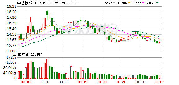 11月12日,崇达技术盘中上涨2.14%,截至09:45,报13.39元/股,成交9248.06万元,换手率0.90%,总 市值163.06亿元。 机构持仓方面,截止2025年9月30日,崇达技术十大流通股东中,香港中央结算有限公司位居第二大流 通股东,持股3620.69万股,相比上期增加2924.55万股。南方中证1000ETF(512100)位居第七大流通 股东,持股613.48万股,为新进股东。 责任编辑:小浪快报 资料显示,崇达技术股份有限公司位于广东省深圳市光明区凤凰街道东坑社区科能路(南延伸段)808号 崇达大厦,成立日期1995年5月4日,上市日期2016年10月12日,公司主营业务涉及印制电路板的设计、 研发、生产和销售。主营业务收入构成为:PCB板82.83%,废料及其他10.52%,IC载板6.64%。 崇达技术所属申万行业为:电子-元件-印制电路板。所属概念板块包括:消费电子、传感器、机器人概 念、AIPC概念、汽车电子等。 截至11月10日,崇达技术股东户数7.29万,较上期增加2.39%;人均流通股10661股,较上期减少 2.33%。2025年1月-9月,崇达技术实现营业收入55. ...