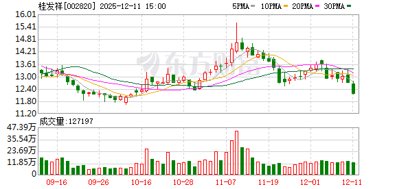 12月2日,桂发祥盘中上涨2.31%,截至13:01,报13.71元/股,成交1.01亿元,换手率3.76%,总市值 27.54亿元。 截至9月30日,桂发祥股东户数3.40万,较上期减少11.27%;人均流通股5911股,较上期增加12.70%。 2025年1月-9月,桂发祥实现营业收入3.77亿元,同比减少6.23%;归母净利润101.96万元,同比减少 97.15%。 分红方面,桂发祥A股上市后累计派现3.10亿元。近三年,累计派现9850.03万元。 机构持仓方面,截止2025年9月30日,桂发祥十大流通股东中,诺安多策略混合A(320016)退出十大 流通股东之列。 责任编辑:小浪快报 今年以来桂发祥已经6次登上龙虎榜,最近一次登上龙虎榜为8月20日,当日龙虎榜净买入-5166.33万 元;买入总计6084.71万元 ,占总成交额比5.24%;卖出总计1.13亿元 ,占总成交额比9.68%。 资料显示,天津桂发祥十八街麻花食品股份有限公司位于天津市河西区洞庭路32号,成立日期1994年9 月20日,上市日期2016年11月18日,公司主营业务涉及传统特色及其他休闲食品的研发、生产和销售。 主营业务收 ...