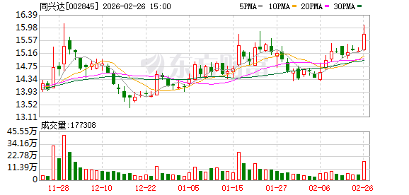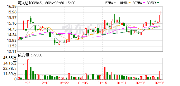 以上内容基于公开资料整理,不构成投资建议。 经济观察网近7天(2026年2月6日至2月12日),同兴达(002845)股价呈现震荡上行态势。2月6日收盘价 为14.55元,单日上涨1.25%;2月9日收盘价14.93元,上涨2.61%;2月10日收盘价15.22元,上涨1.94%; 2月11日收盘价15.18元,下跌0.26%;2月12日最新收盘价15.12元,下跌0.40%。区间累计涨幅5.22%, 振幅8.56%。资金流向波动显著,2月9日主力资金净流入64.14万元,但2月11日主力净流出1500.44万 元,2月12日主力净流出270万元。成交额方面,2月11日达9027.69万元,换手率2.37%,显示短期交易 活跃度提升。技术面显示股价近期在压力位15.47元与支撑位14.88元间震荡,MACD指标呈弱多头信 号。财报分析同兴达2025年第三季度报告(截至2025年9月30日)显示,前三季度营业收入76.05亿元,同 比增长9.24%;但归母净利润亏损1538.17万元,同比下降121.23%。单季度第三季度营收28.11亿元,同 比增长6.99%;净利润1361.91万元,同比下降75.02%。 ...