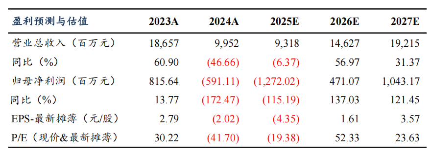 证券研究报告·公司点评报告·光伏设备 钧达股份(002865) 钧达股份收购卫星整星总体企业巡天千河母 公司 60%股权 买入(维持) | [Table_EPS] 盈利预测与估值 | 2023A | 2024A | 2025E | 2026E | 2027E | | --- | --- | --- | --- | --- | --- | | 营业总收入(百万元) | 18,657 | 9,952 | 9,318 | 14,627 | 19,215 | | 同比(%) | 60.90 | (46.66) | (6.37) | 56.97 | 31.37 | | 归母净利润(百万元) | 815.64 | (591.11) | (1,272.02) | 471.07 | 1,043.17 | | 同比(%) | 13.77 | (172.47) | (115.19) | 137.03 | 121.45 | | EPS-最新摊薄(元/股) | 2.79 | (2.02) | (4.35) | 1.61 | 3.57 | | P/E(现价&最新摊薄) | 30.22 | (41.70) | (19.38) | 52. ...