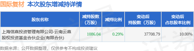 10月27日国际复材发布公告,股东减持1086.04万股