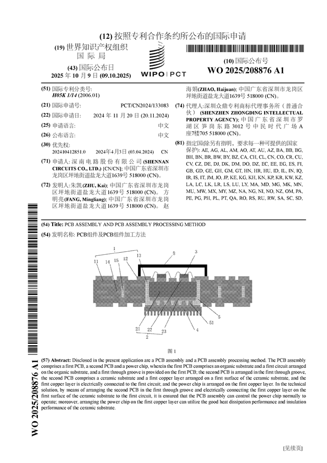 深南电路公布国际专利申请:“PCB组件及PCB组件加工方法”