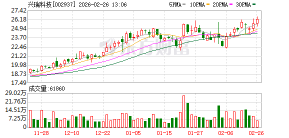 2026 年 02 月 26 日 精密制造领先企业,液冷和机器人业务新增看点 —兴瑞科技(002937.SZ)公司动态研究报告 买入(首次) 投资要点 分析师:任春阳 S1050521110006 rency@cfsc.com.cn | 基本数据 | 2 0 2 6-0 2-2 6 | | --- | --- | | 当前股价(元) | 26.2 | | 总市值(亿元) | 78 | | 总股本(百万股) | 298 | | 流通股本(百万股) | 297 | | 52 周价格范围(元) | 15.17-26.2 | | 日均成交额(百万元) | 147.05 | 市场表现 资料来源:Wind,华鑫证券研究 -40 -30 -20 -10 0 10 20 30 (%) 兴瑞科技 沪深300 相关研究 ▌精密制造领先企业,聚焦三大业务领域 公司成立于 2001 年,是一家精密零组件制造及研发企业,产 品涵盖电子连接器、结构件、镶嵌注塑集成件等,聚焦新能 源汽车电装系统、智能终端及消费电子领域,为行业高端客 户提供定制化系统解决方案,2025 年上半年汽车电子营收占 比 52.32%,贡献公司大部分营收。深耕精密 ...