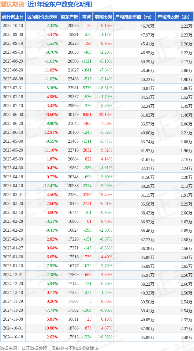 瑞达期货:截至股权登记日2025年10月10日公司股东总户数为20026户