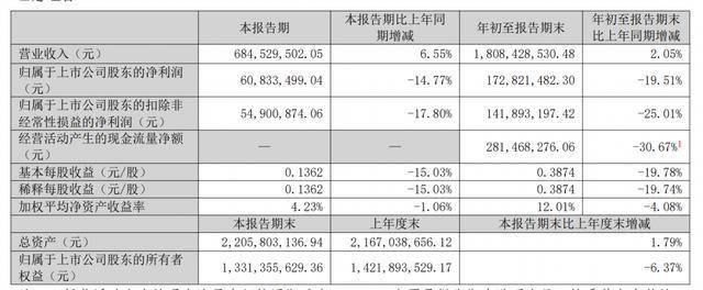 Core Viewpoint - The recent quarterly report of Jinzai Food (003000.SZ) indicates a revenue increase without profit growth, with a slight revenue growth of 2.05% year-on-year to 1.808 billion yuan, marking the lowest growth rate since its listing in 2020. The net profit attributable to shareholders decreased by 19.51% to 173 million yuan [3][4]. Group 1: Q3 Performance - In Q3, Jinzai Food achieved a revenue of 685 million yuan, with year-on-year and quarter-on-quarter growth of 6.55% and 29.52%, respectively. However, the net profit decreased by 14.77% year-on-year to 60.83 million yuan, indicating ongoing pressure on profitability [5][7]. - The company has been focusing on the development, production, and sales of Chinese-style snack foods, with major products including fish products, poultry products, and bean products. Revenue growth rates from 2021 to 2024 were 22.21%, 31.59%, 41.26%, and 16.79%, respectively [5][6]. - The company has expanded its distribution channels, increasing the number of distributors to 3,502, up by 336 from the previous year. However, the core sales model's distributor revenue declined by 9.25% to 792 million yuan [5][6]. Group 2: Product Performance - The growth of fish products, a key revenue driver, showed signs of slowing down, with a revenue of 757 million yuan in the first half of the year, a year-on-year increase of 7.61%, accounting for approximately 67.4% of total revenue. The growth rate has significantly decreased from 16.64% in the previous year [11][12]. - The company has been focusing on poultry products as a second growth curve, with revenue from this segment reaching 450 million yuan in 2023. However, in 2025, poultry product sales dropped by 27.88% year-on-year, leading to a revenue decline of 24% to 196 million yuan [12][13]. Group 3: Financial Metrics - The gross profit margin for Q3 decreased by 1.14 percentage points to 28.93%, influenced by changes in channel structure and the performance of different sales models [7][10]. - Sales expenses reached a record high of 250 million yuan in the first three quarters, with Q3 sales expenses at 95 million yuan, resulting in a sales expense ratio of 13.82%, an increase of 1.59 percentage points year-on-year [10].