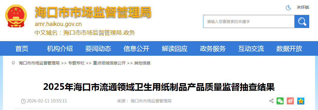 2025年海口市流通领域卫生用纸制品产品质量监督抽查结果公布