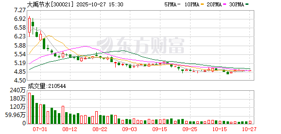 每经头条(nbdtoutiao)——独家丨民营船王入主杉杉集团横生枝节 重整联合体浮现神秘组局人 截至发稿,大禹节水市值为50亿元。 每经AI快讯,大禹节水(SZ 300021,收盘价:4.89元)10月27日晚间发布三季度业绩公告称,2025年 前三季度营收约20.67亿元,同比增加9.73%;归属于上市公司股东的净利润约1108万元,同比减少 62.92%;基本每股收益0.0127元,同比减少63.61%。 (记者 王晓波) ...