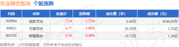农业综合板块1月12日涨0.73%,润农节水领涨,主力资金净流出1917.45万元