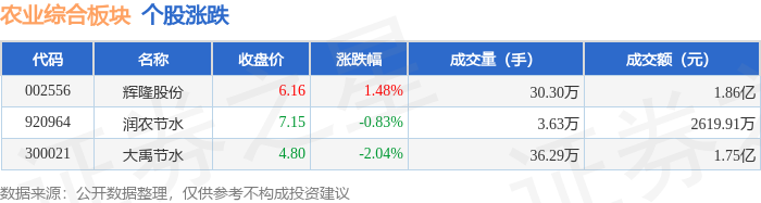 农业综合板块1月9日涨0.47%,辉隆股份领涨,主力资金净流入17.85万元