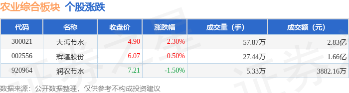 农业综合板块1月15日跌0.02%,大禹节水领跌,主力资金净流出1721.51万元