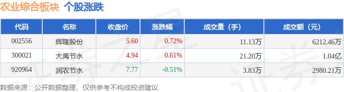 农业综合板块10月10日涨0.95%,润农节水领涨,主力资金净流出256.73万元