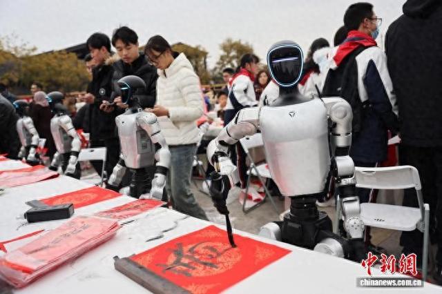 2月7日,"千联竞秀·万福满城"成都·青白江写春联送祝福活动在城厢古城举行。活动现场,数百张长桌 依次排开,来自青白江区的五百余名书法家、书法爱好者及中小学生同写春联。4台人形机器人也"灵 巧"地握持毛笔,与书法家同台展开了一场别开生面的"书写竞技"。图为人形机器人写春联。中新社记 者 张浪 摄 图为人形机器人写春联。中新社记者 张浪 摄 现场。中新社记者 张浪 摄 图为活动 现场。中新社记者 张浪 摄 图为人形 机器人写春联。中新社记者 张浪 摄 图为活动 图为活动 学生写春联。中新社记者 张浪 摄 者展示人形机器人书写的春联。中新社记者 张浪 摄 图为表演 现场。中新社记者 张浪 摄 学生写春联。中新社记者 张浪 摄 现场。中新社记者 张浪 摄 图为中小 图为活动 图为中小 ...