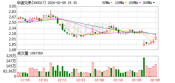 | 交易日期 | 证券代码 | 证券简称 | 成交价格 | 成交星 | 成交金额 | 买方营业部 | 卖方营业部 | | --- | --- | --- | --- | --- | --- | --- | --- | | | | | (元) | (万股/万份) | (万元) | | | | 2026-02-06 | 300027 | 华谊兄弟 | 1.53 | 34.87 | 53.35 | 华鑫证券有限责任 | 华宝证券股份有限 | | | | | | | | 公司上海徐汇区云 | 公司上海徐汇区淮 | | | | | | | | 锦路证券营业部 | 海中路证券营业部 | 2月6日,华谊兄弟大宗交易成交34.87万股,成交额53.35万元,占当日总成交额的0.16%,成交价1.53元,较市场收盘价1.95 元折价21.54%。 ...