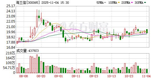 Group 1 - The core viewpoint of the news is that Hailanxin's stock has experienced fluctuations, with a notable decline of 2.09% on November 4, 2023, despite a year-to-date increase of 140.49% [1] - As of November 4, 2023, Hailanxin's stock price is reported at 19.72 yuan per share, with a total market capitalization of 14.208 billion yuan [1] - The company has seen significant trading activity, with a net outflow of 49.602 million yuan in principal funds and a total trading volume of 715 million yuan on the same day [1] Group 2 - Hailanxin's main business segments include marine observation detection equipment and intelligent ship systems, contributing 67.32% and 32.29% to its revenue, respectively [1] - For the period from January to September 2025, Hailanxin achieved a revenue of 580 million yuan, representing a year-on-year growth of 128.52%, and a net profit of 39.808 million yuan, up 290.58% [2] - The company has a total of 102,300 shareholders as of September 30, 2025, with a decrease of 10.20% from the previous period [2] Group 3 - Hailanxin has not distributed any dividends in the past three years, with a total payout of 93.8547 million yuan since its A-share listing [3] - As of September 30, 2025, Hong Kong Central Clearing Limited is the fifth-largest shareholder, holding 3.1259 million shares as a new shareholder [3]