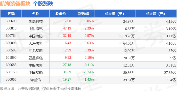Core Viewpoint - The maritime equipment sector experienced a decline of 0.39% on October 16, with Guorui Technology leading the losses, while the Shanghai Composite Index rose by 0.1% and the Shenzhen Component Index fell by 0.25% [1] Group 1: Market Performance - The closing price of Zhongke Haixun was 50.10, with an increase of 4.94%, while China Shipbuilding closed at 35.29, down by 0.11% [1] - The total trading volume for Zhongke Haixun was 131,000 shares, with a transaction value of 646 million yuan [1] - The maritime equipment sector saw a net outflow of 172 million yuan from main funds, while retail investors contributed a net inflow of 149 million yuan [1] Group 2: Fund Flow Analysis - Zhongke Haixun had a net inflow of 25.09 million yuan from main funds, while Jianglong Shipbuilding experienced a net outflow of 3.23 million yuan [2] - Guorui Technology faced a net outflow of 10.46 million yuan from main funds, but saw a net inflow of 11.54 million yuan from retail investors [2] - China Shipbuilding had a net outflow of 49.15 million yuan from main funds, with retail investors contributing a net inflow of 57.55 million yuan [2]