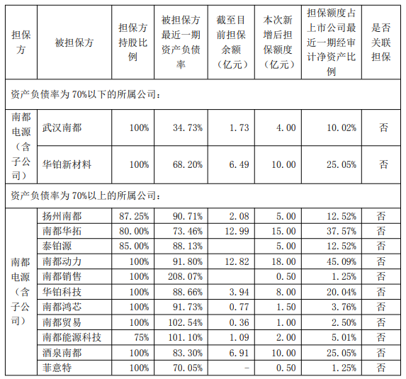 南都电源:公司对子公司及控股子公司实际担保余额为49.18亿元