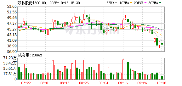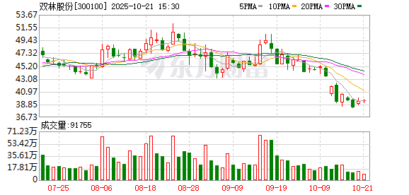 10月14日,双林股份跌5%,截至发稿,报39.67元/股,成交7.12亿元,换手率3.15%,总市值226.91亿 元。 资料显示,双林股份有限公司位于上海市青浦区北盈路202号,香港铜锣湾勿地臣街1号时代广场2座31 楼,成立日期2000年11月23日,上市日期2010年8月6日,公司主营业务涉及汽车零部件的生产与销售; 口罩等防护物资的生产、销售。主营业务收入构成为:内外饰及机电部件53.23%,轮毂轴承部件 24.38%,新能源电驱17.45%,其他4.94%。 从基金十大重仓股角度 数据显示,国寿安保基金旗下1只基金重仓双林股份。国寿安保创精选88ETF(159804)二季度持有股 数4.98万股,占基金净值比例为1.81%,位居第十大重仓股。根据测算,今日浮亏损失约10.4万元。 国寿安保创精选88ETF(159804)成立日期2020年3月4日,最新规模1.3亿。今年以来收益24.8%,同类 排名2216/4220;近一年收益31.17%,同类排名1844/3857;成立以来收益41.4%。 国寿安保创精选88ETF(159804)基金经理为李康、苏天醒。 截至发稿,李康累计任职时间10年212 ...
