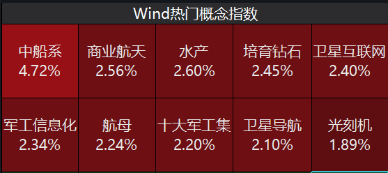 今日,受重磅消息提振,商业航天、卫星互联网、卫星导航等板块领涨市场。卫星ETF(159206)高开涨超2%。截至10:00,成分股光库科技涨超9%,航 天智装、乾照光电、华曙高科、中国卫星、臻镭科技等个股跟涨。 | | | Wind热门概念指数 | | | | --- | --- | --- | --- | --- | | 中船系 | 商业航天 | 水产 | 培育钻石 卫星互联网 | | | 4.72% | 2.56% | 2.60% | 2.45% | 2.40% | | 军工信息化 | 航母 | 十大军工集 | 卫星导航 | 光刻机 | | 2.34% | 2.24% | 2.20% | 2.10% | 1.89% | 注:卫星ETF(159206)成立日期为2025/3/6,早于同类产品,卫星ETF同类指追踪国证商用卫星通信产业指数的所有ETF基金。 基金有风险,投资需谨慎。本文所包含的分析基于各种假设,不同假设可能导致分析结果出现重大不同。在任何情况下,本文中的信息或所表述的意见并不 构成对任何人的投资建议。 以上内容与数据,与有连云立场无关,不构成投资建议。据此操作,风险自担。 | 序号 | 代码 ...