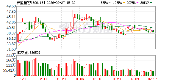 长盈精密涨2.02%,成交额14.10亿元,主力资金净流出9712.47万元