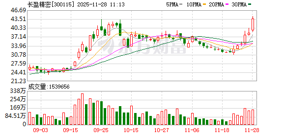 铜缆高速连接板块活跃,长盈精密上涨超11%