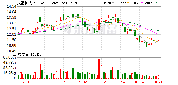 截至发稿,大富科技市值为90亿元。 每经AI快讯,大富科技(SZ 300134,收盘价:11.68元)10月28日晚间发布公告称,鉴于大盛石墨经营 持续未达预期,为了进一步响应公司剥离低效资产、加快流动性收回的经营规划,同时为了进一步落实 夯实基础、聚焦主业的发展战略,公司拟通过省级以上产权交易机构公开挂牌转让乌兰察布市大盛石墨 新材料股份有限公司49%股权。 2025年1至6月份,大富科技的营业收入构成为:通讯设备制造业占比61.16%,精密电子行业占比 27.87%,汽车行业占比7.09%,其他业务占比2.23%,智能装备系列占比1.65%。 (记者 曾健辉) 每经头条(nbdtoutiao)——A股突破4000点!十年沉寂终迎爆发,科技主线重塑市场,"慢牛"新格局开 启! ...