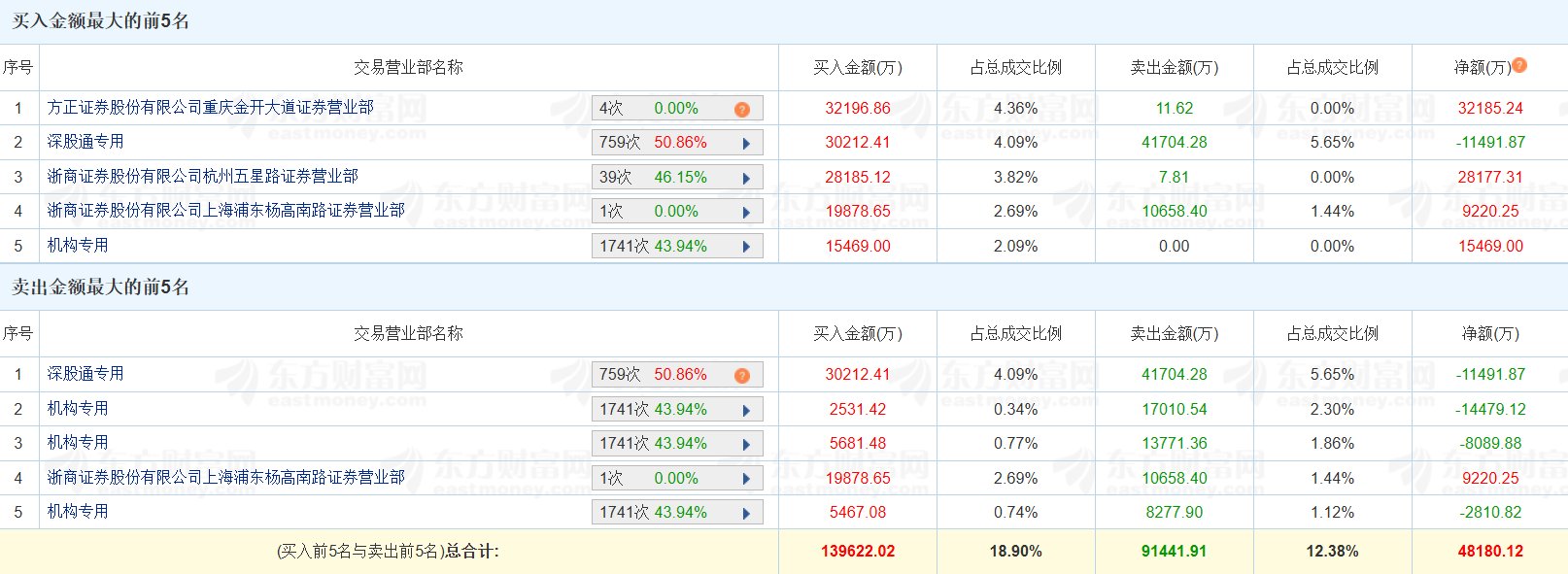 龙虎榜丨汉得信息20CM涨停,涪陵广场路净买入3.22亿元,深股通净卖出1.15亿元