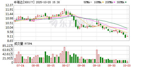 Core Viewpoint - The stock of Zhonghaidah has shown a slight increase of 2.41% on October 21, 2023, with a current price of 9.35 CNY per share, despite a year-to-date decline of 14.30% [1] Financial Performance - For the first half of 2025, Zhonghaidah reported a revenue of 493 million CNY, representing a year-on-year growth of 15.39% [2] - The company experienced a net profit loss of 23.69 million CNY, but this reflects a year-on-year improvement of 35.76% [2] Shareholder Information - As of June 30, 2025, the number of shareholders for Zhonghaidah is 74,000, a decrease of 0.78% from the previous period [2] - The average number of circulating shares per shareholder is 8,193, which has increased by 0.79% [2] Dividend Distribution - Since its A-share listing, Zhonghaidah has distributed a total of 102 million CNY in dividends, with no dividends paid in the last three years [3] Stockholder Composition - As of June 30, 2025, Hong Kong Central Clearing Limited is the fourth largest circulating shareholder, holding 2.91 million shares, a decrease of 4.19 million shares from the previous period [3] Company Overview - Zhonghaidah, established on June 21, 2006, and listed on February 15, 2011, specializes in high-precision positioning technology, focusing on the development, manufacturing, and sales of related software and hardware products [1] - The company's main revenue sources are high-precision positioning equipment and industry solutions (83.32%) and spatiotemporal data and information services (16.68%) [1] Industry Classification - Zhonghaidah is classified under the defense and military electronics sector, with involvement in emergency management, geographic information, spatiotemporal big data, Beidou navigation, and domestic software [1]