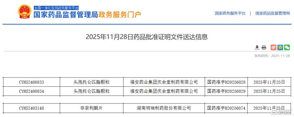 福安药业:国内除原研进口厂商外,庆余堂是头孢托仑匹酯颗粒首仿厂家
