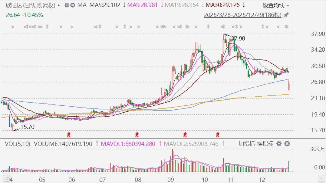 A股异动丨欣旺达暴雷,股价放量大跌近16%