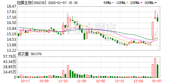 1月8日,冠昊生物盘中上涨2.04%,截至10:22,报17.01元/股,成交1.60亿元,换手率3.61%,总市值 45.10亿元。 冠昊生物今年以来股价涨22.82%,近5个交易日涨22.37%,近20日涨17.80%,近60日涨13.86%。 责任编辑:小浪快报 资料显示,冠昊生物科技股份有限公司位于广东省广州市黄埔区玉岩路12号,成立日期1999年10月22 日,上市日期2011年7月6日,公司主营业务涉及再生医学材料及再生型医用植入器械研发、生产和销 售,以及细胞治疗技术研发、制备、临床应用,免疫细胞存储等。主营业务收入构成为:医疗器械 73.28%,药品15.21%,租赁及其他服务业11.51%。 分红方面,冠昊生物A股上市后累计派现8665.95万元。近三年,累计派现0.00元。 资金流向方面,主力资金净流出1364.39万元,特大单买入232.44万元,占比1.45%,卖出371.44万元, 占比2.32%;大单买入2004.73万元,占比12.51%,卖出3230.12万元,占比20.16%。 机构持仓方面,截止2025年9月30日,冠昊生物十大流通股东中,医疗器械ETF(159883)位居 ...