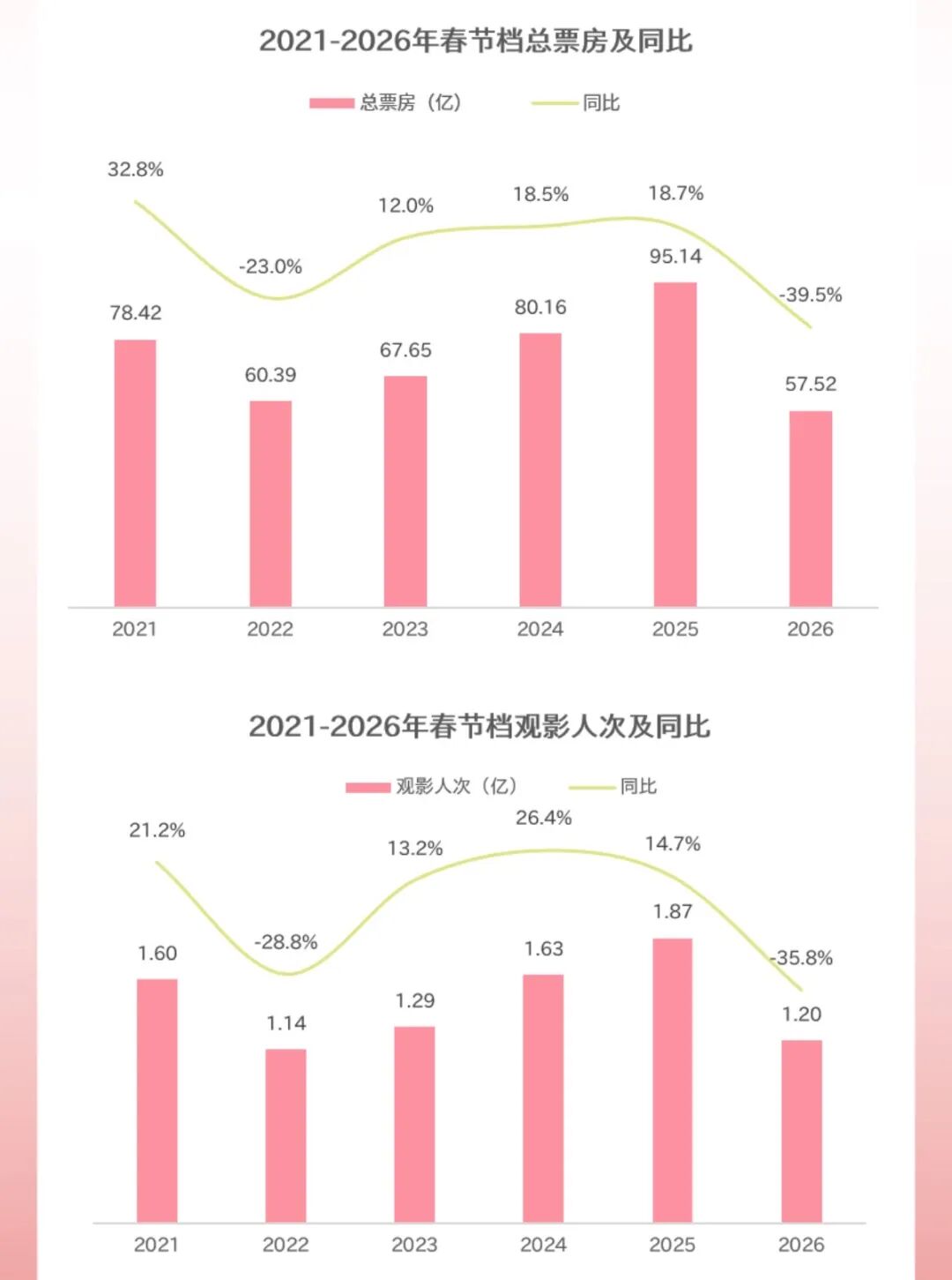 文 | 源Sight周艺 史上"最长春节假期"落幕,虽然电影不及预期,但旅游、短剧等其他文娱市场依旧显示出欣欣向荣的活力。 据猫眼发布的春节档数据洞察,2026年春节档(正月初一至初九,共9天)以57.52亿元收官,同比下滑39.5%,与2018年持平;总观影人次为1.2亿,同比 下降35.8%。最重要的是,平均票价更是降到了47.8元,同比下降5.9%,是近六年来票价最低的一年。 与电影行业形成鲜明对比的是旅游和短剧。根据有关数据,随着免签国家的增加,出、入境游的人次实现增长。春节期间的旅游人数和相关消费则创下历 史新高。 另一方面,选择宅家度过最长假期的人也向更具性价比的娱乐方式"低头"了——短剧成为春节档的最大惊喜,各类IP爆款不断,富含不同题材的创新内 容,弥补了同档期电影的传统和匮乏。 市场和观众都不再对电影抱有幻想,文娱行业的热钱终于开始重新流动。 银幕失落 事实上,今年春节档的失利早在预期之内。 从影片构成来看,"头部空心化"的情况是近年来最严重的一次。仅有《飞驰人生》和《熊出没》两部知名IP坐镇,而像《星河入梦》和《熊猫计划》这种 体量的影片在往年是不会排到春节档这个档期中的。另外,因为缺乏像 ...