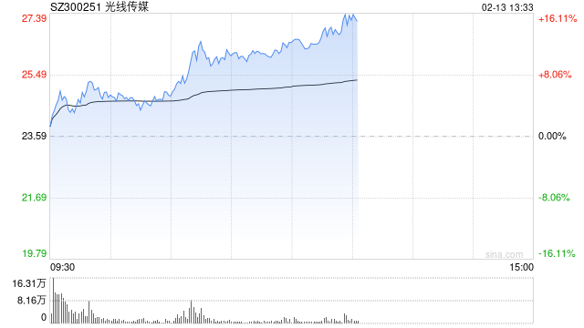 影视院线板块午后持续拉升,光线传媒涨超16%