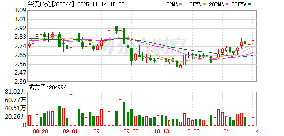 兴源环境涨2.33%,成交额4217.56万元,主力资金净流出282.74万元