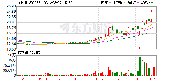 每经AI快讯,海联讯发布公告称,2026年2月25日、2026年2月26日,海联讯接受广发证券等投资者调 研,公司王钢、陈翔及公司董事会办公室人员参与接待,并回答了投资者提出的问题。 每经头条(nbdtoutiao)——2月井喷!中国AI调用量首超美国,四款大模型霸榜全球前五,国产算力需 求正经历指数级增长 (记者 张明双) ...