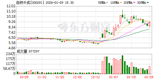 百纳千成:预计2025年度净利润亏损8亿元~12亿元