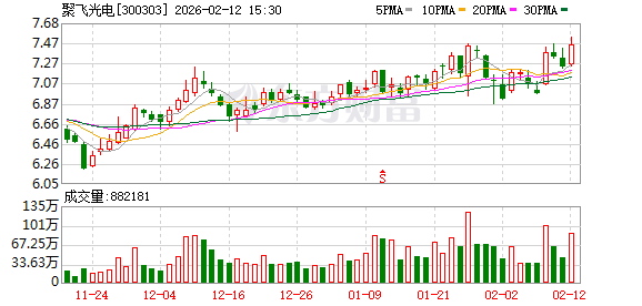 股票近期走势 截至2026年2月12日,聚飞光电股价报7.38元/股,今年以来累计上涨7.89%,近5日涨幅4.53%。当日主 力资金净流入484.55万元,成交额1.09亿元,换手率1.12%。融资余额仍处于高位,截至2月3日融资余 额为8.40亿元,占流通市值8.25%。 业绩经营情况 经济观察网 根据近期公开信息,聚飞光电(300303)(300303)有以下值得关注的事件点,主要基于 公司公告和市场数据。 公司2025年前三季度营业收入为25.85亿元,同比增长17.07%,但归母净利润2.11亿元,同比下滑 7.66%,反映成本端压力。此外,公司于2025年12月31日完成回购991万股,占总股本0.7003%,回购金 额6436万元,价格区间为5.82-7.11元/股。 以上内容基于公开资料整理,不构成投资建议。 未来发展 后市需重点关注2025年第四季度业绩能否扭转利润下滑趋势,这将是影响股价的关键因素。Mini/Micro LED技术加速发展,公司作为SMD LED封装企业,需跟踪5G、车载显示等下游需求变化对基本面的影 响。融资余额持续高位,且机构股东如南方中证1000ETF、香港中央结算有 ...