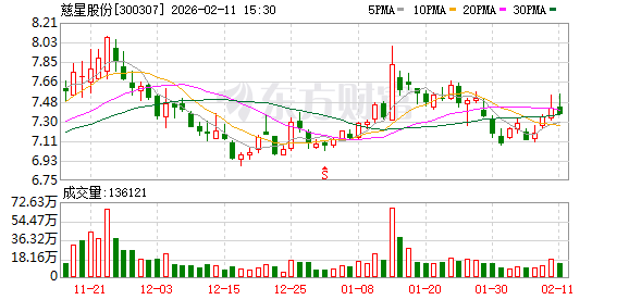 证券代码:300307 证券简称:慈星股份 公告编号:2026-001 | 项 目 | | 本报告期 | | | 上年同期 | | --- | --- | --- | --- | --- | --- | | 归属于上市公司股 | | 10,500 | ~ | 13,000 | 28,383.65 | | 东的净利润 | 比上年同期下降 | 54.20% | ~ | 63.01% | | | 扣除非经常性损益 | | 7,700 | ~ | 10,200 | 14,191.42 | | 后的净利润 | 比上年同期下降 | 28.13% | ~ | 45.74% | | 宁波慈星股份有限公司 2025 年度业绩预告 本公司及董事会全体成员保证信息披露的内容真实、准确、完整, 没有虚假记载、误导性陈述或重大遗漏。 一、本期业绩预计情况 1、业绩预告期间:2025年1月1日至2025年12月31日。 2、业绩预告情况:预计净利润为正值且属于同向下降50%以上情形 (1)以区间数进行业绩预告的 单位:万元 四、其他相关说明 1、本次业绩预告是公司财务部门初步测算的结果,未经审计机构审计。 2、2025 年度业绩具体数据 ...