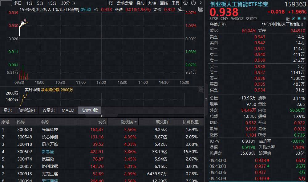 ETF盘中资讯|光模块CPO反弹!“易中天”涨超2%,创业板人工智能ETF(159363)冲高逾2%资金加码