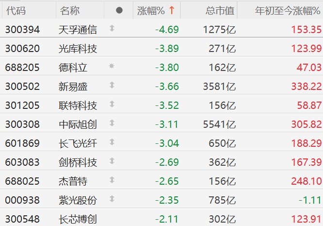 A股异动丨CPO概念连续第二日集体回调,中际旭创绩后跌超3%