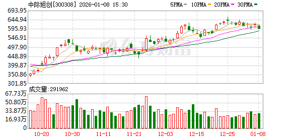 两融数据显示,该股最新融资余额为212.34亿元,近5日减少1.14亿元,降幅为0.53%。(数据宝) 1月8日中际旭创大宗交易一览 | 成交量(万 | 成交金额(万 | 成交价格 | 相对当日收盘折溢价 | 买方营业 | 卖方营业 | | --- | --- | --- | --- | --- | --- | | 股) | 元) | (元) | (%) | 部 | 部 | | 10.00 | 5954.50 | 595.45 | 0.00 | 机构专用 | 机构专用 | (文章来源:证券时报网) 中际旭创1月8日大宗交易平台出现一笔成交,成交量10.00万股,成交金额5954.50万元,大宗交易成交 价为595.45元。该笔交易的买卖双方均为机构专用席位。 进一步统计,近3个月内该股累计发生43笔大宗交易,合计成交金额为29.46亿元。 证券时报·数据宝统计显示,中际旭创今日收盘价为595.45元,下跌3.90%,日换手率为2.64%,成交额 为175.23亿元,全天主力资金净流出31.56亿元,近5日该股累计下跌5.78%,近5日资金合计净流出69.33 亿元。 ...