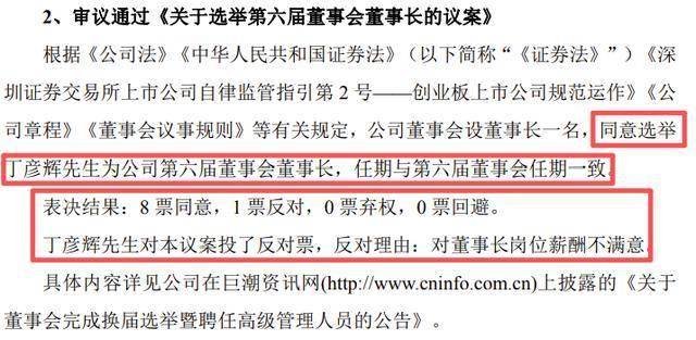 因不满意岗位薪酬,投票反对自己当董事长?本人回应