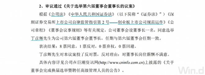 上市公司董事长投票反对自己连任 原因系“对薪酬不满意”